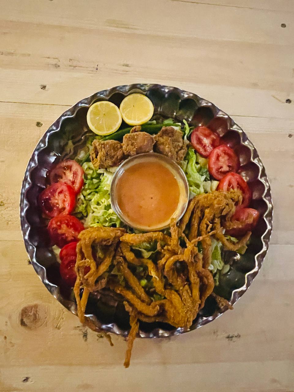 منوهای کاریز غذاهای دریایی میگو پلوی بندریبرنج و میگو همراه با زعفران، رب و فلفل جنوبی؛ بسیار محبوب. 450 تومان قلیهماهی خاص هرمزگانغلیظ تر از نسخه بوشهری، با تمر هندی کمتر و فلفل بیشتر. 500 تومان قلیهمیگوی تندخورشتی جنوبپسند با میگوی درشت، تمرهندی، سیر و فلفل فراوان. 350 تومان ماهی شکمپر جنوبیماهی تازه با سبزی، تمر هندی و فلفل شکمپر شده و روی آتش پختهشده. 400 تومان غذاهای محلی هرمزگان مهیاوهسس محلی جنوب با مزه تند و تیز، تهیهشده از ماهی ریز، خردل و ادویههای مخصوص؛ چاشنی محبوب کنار نان تُمشی. 200 تومان کلمبا (کلمپه هرمزگانی)ترکیبی از آرد، شیره و ادویههای گرم؛ غذای ساده اما بسیار انرژیزا و محلی. 300 تومان دُمپخت جنوبیبرنج مخلوط با حبوبات یا ماهی ریز، همراه با ادویه تند بندری؛ غذایی سریع و پرطرفدار. 250 تومان موفلکپلو محلی با ماهیریز یا ماهی ریشریششده، ادویه محلی و سبزیهای خشک جنوبی. 320 تومان خورشتهای ایرانی قرمهسبزیخورشت اصیل ایرانی با سبزی تازه، گوشت گوسفندی، لوبیا قرمز و لیموعمانی؛ عطری ماندگار و طعمی اصیل. 250 تومان قیمهترکیب دلچسب لپه، گوشت، رب خوشرنگ و خلال سیبزمینی سرخشده؛ انتخاب محبوب مهمانیها و مجالس. 250 تومان خورشت بامیهبامیه تازه با گوشت، سیر و لیموعمانی؛ یکی از محبوبترین خورشتهای جنوبی و ایرانی. 200 تومان خورشت آلوماهشتینسخه جنوبی از خورشت آلو و گوشت با ادویه تند؛ ترکیبی ملس و ادویهای. 280 تومان شش ناهار خوشمزه با فقط 150 تومان غذای محلی کاریزبرنج، لیمو، گوشت Parmesan BreadRatione, nostrum mus hic harum aptent at quae sapien illo Banana Waffles Ratione, nostrum mus hic harum aptent at quae sapien illo Cheese Garlic BreadRoasted eggplant spread, marinat Cottage Cheese Fusilli Roasted eggplant spread, marinated tomatoes with garlic & fresh basil 8 Whole Grain PastaRoasted eggplant spread, marinated tomatoes with garlic & fresh basil 8